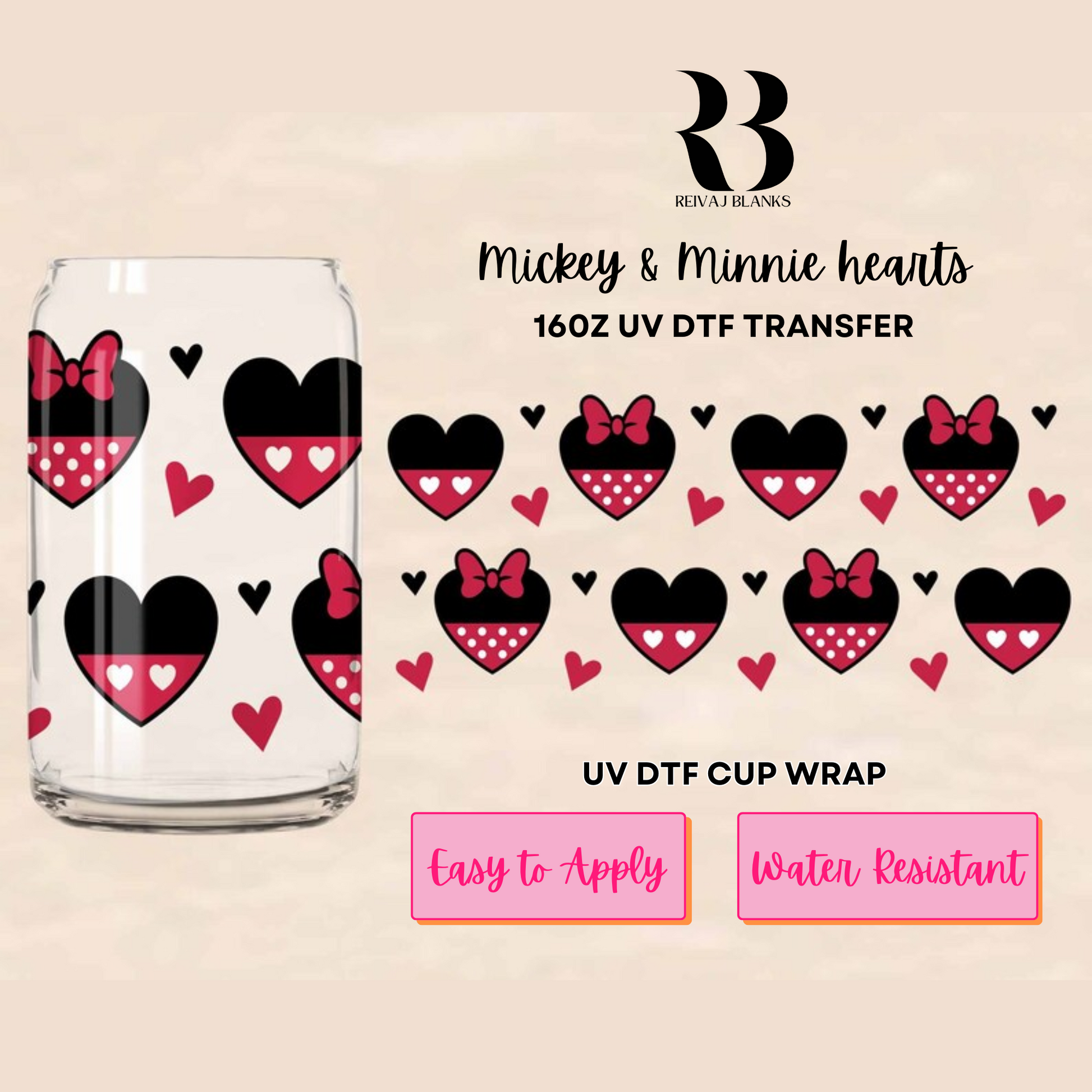 MICKEY & MINNIE HEARTS UV DTF WRAP
