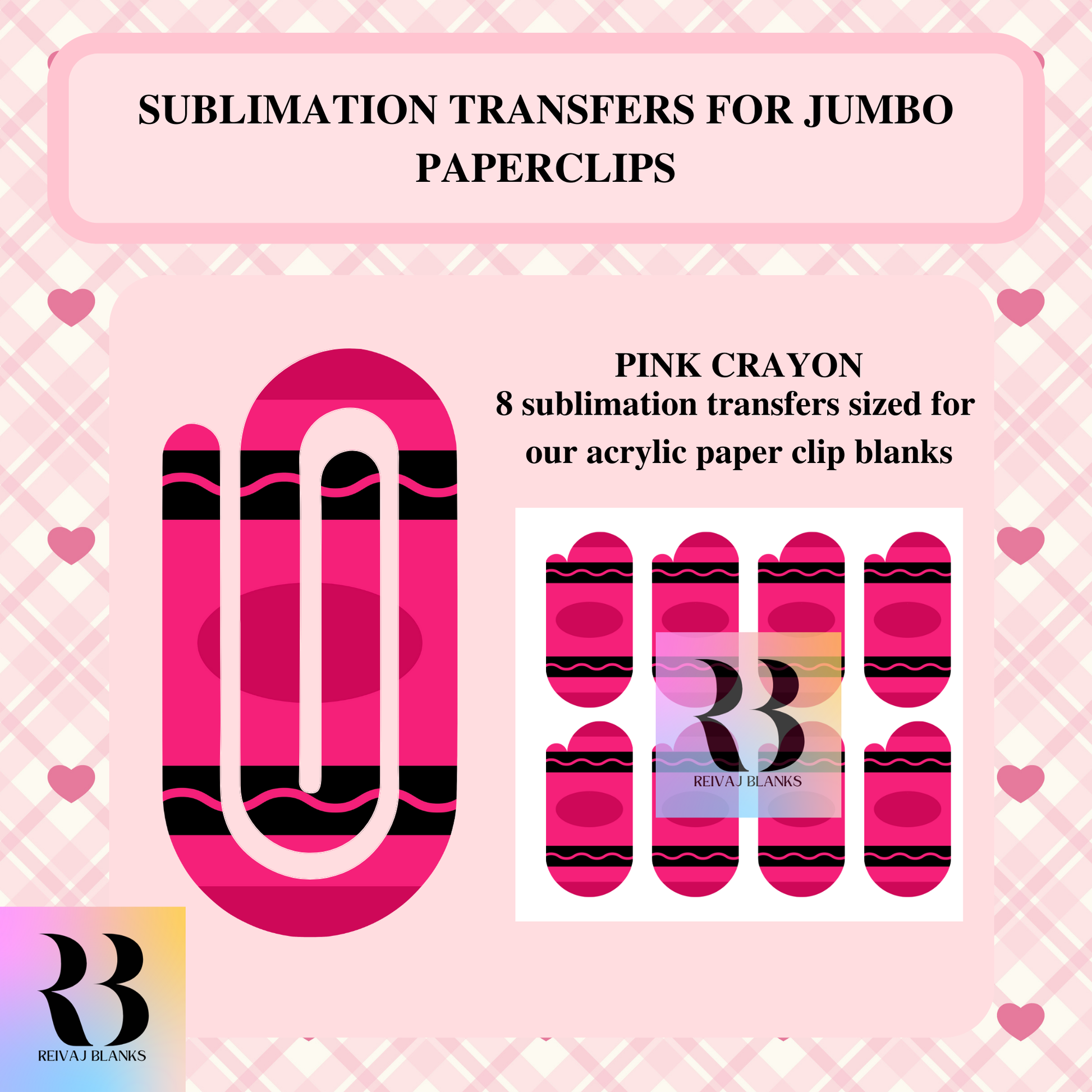 This Sublimation Transfer is made for our BLANK JUMBO SUBLIMATION ACRYLIC PAPERCLIPS