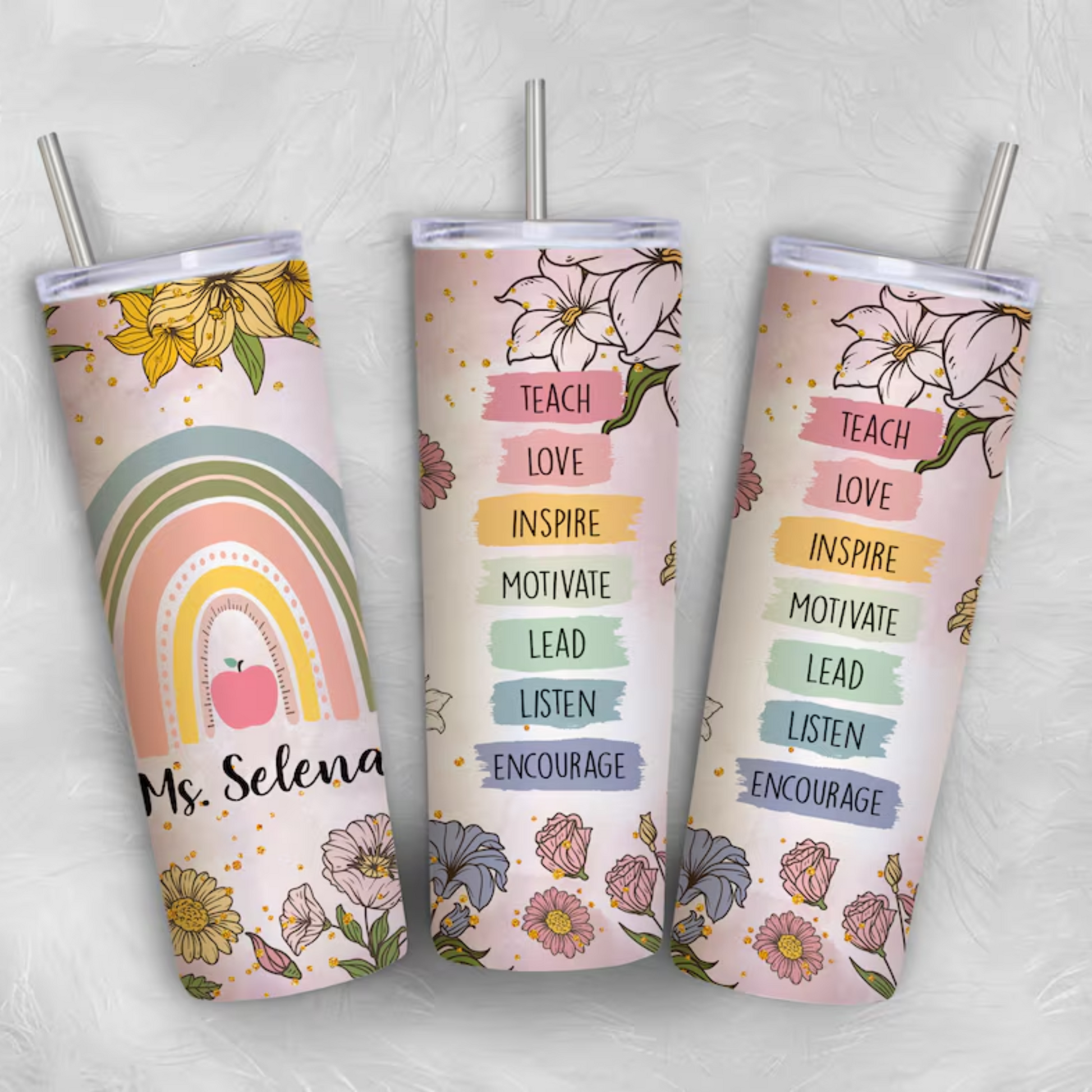 FLORAL TEACH LOVE INSPIRE TUMBLER
