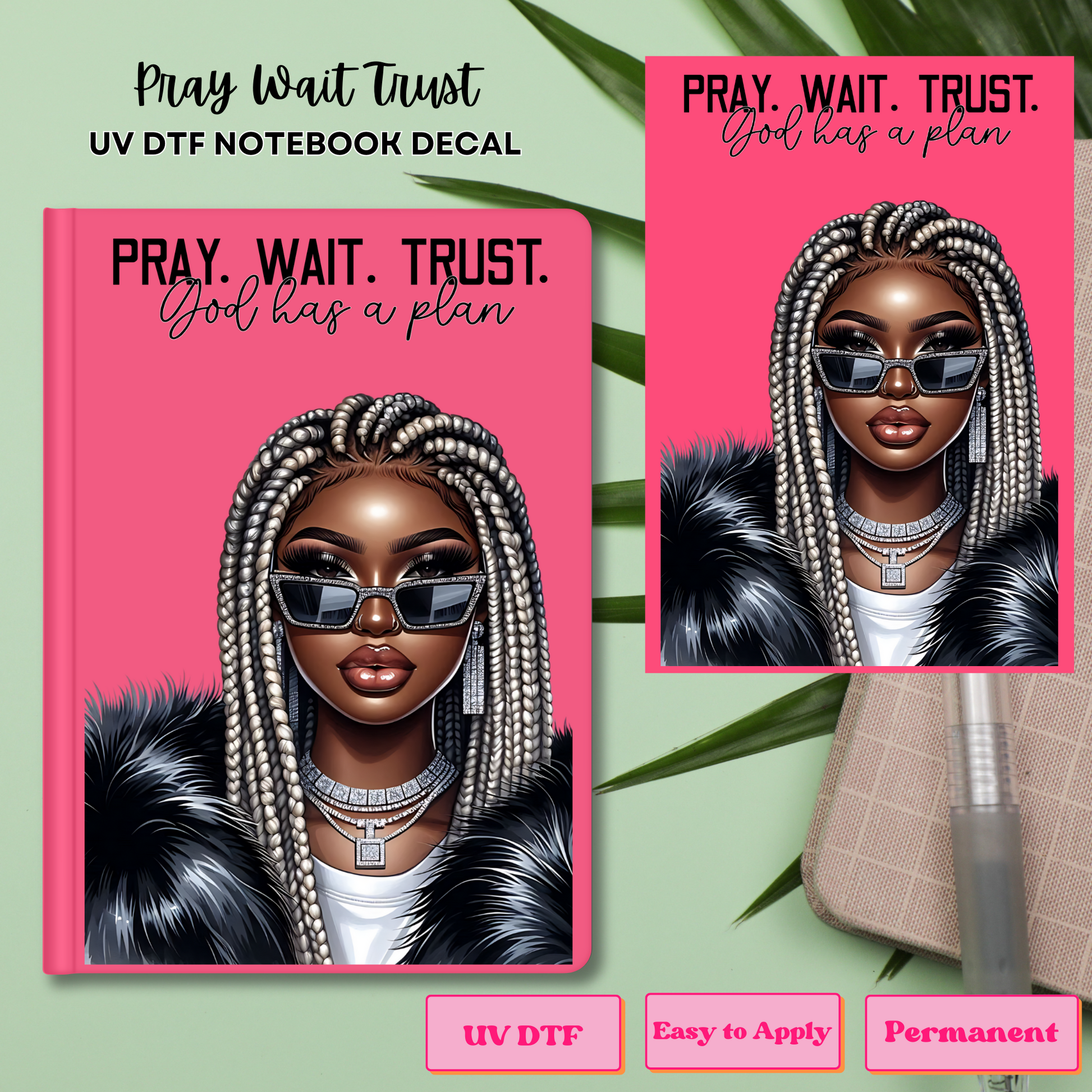 PRAY WAIT TRUST UV DTF NOTEBOOK DECAL