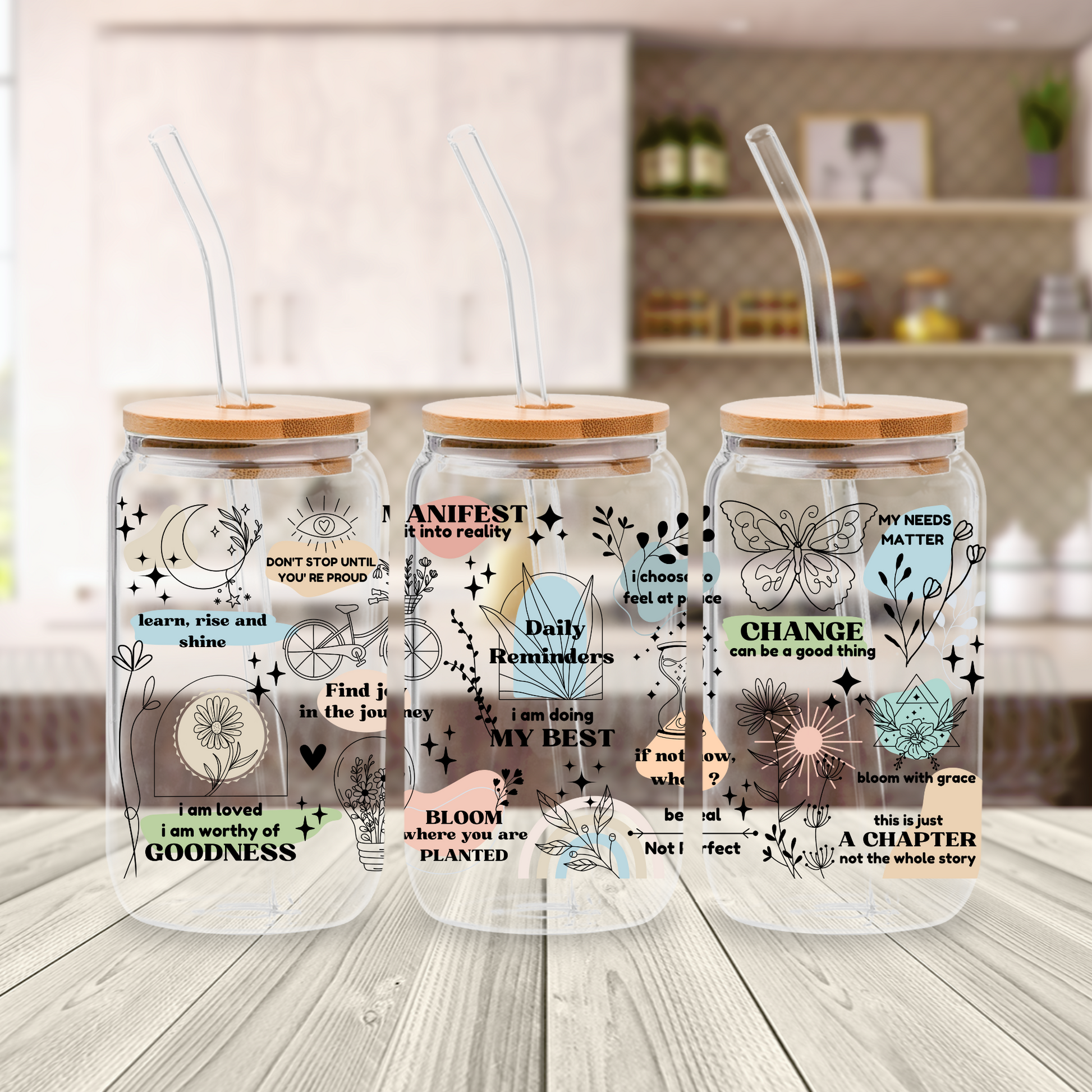 DO NOT USE ALCOHOL ON YOUR GLASS CAN / PLASTIC CAN OR THE WRAP/DECAL MAY NOT STICK SOAP AND WATER IS ALL THAT IS NEEDED TO CLEAN YOUR CAN, WIPE DRY.